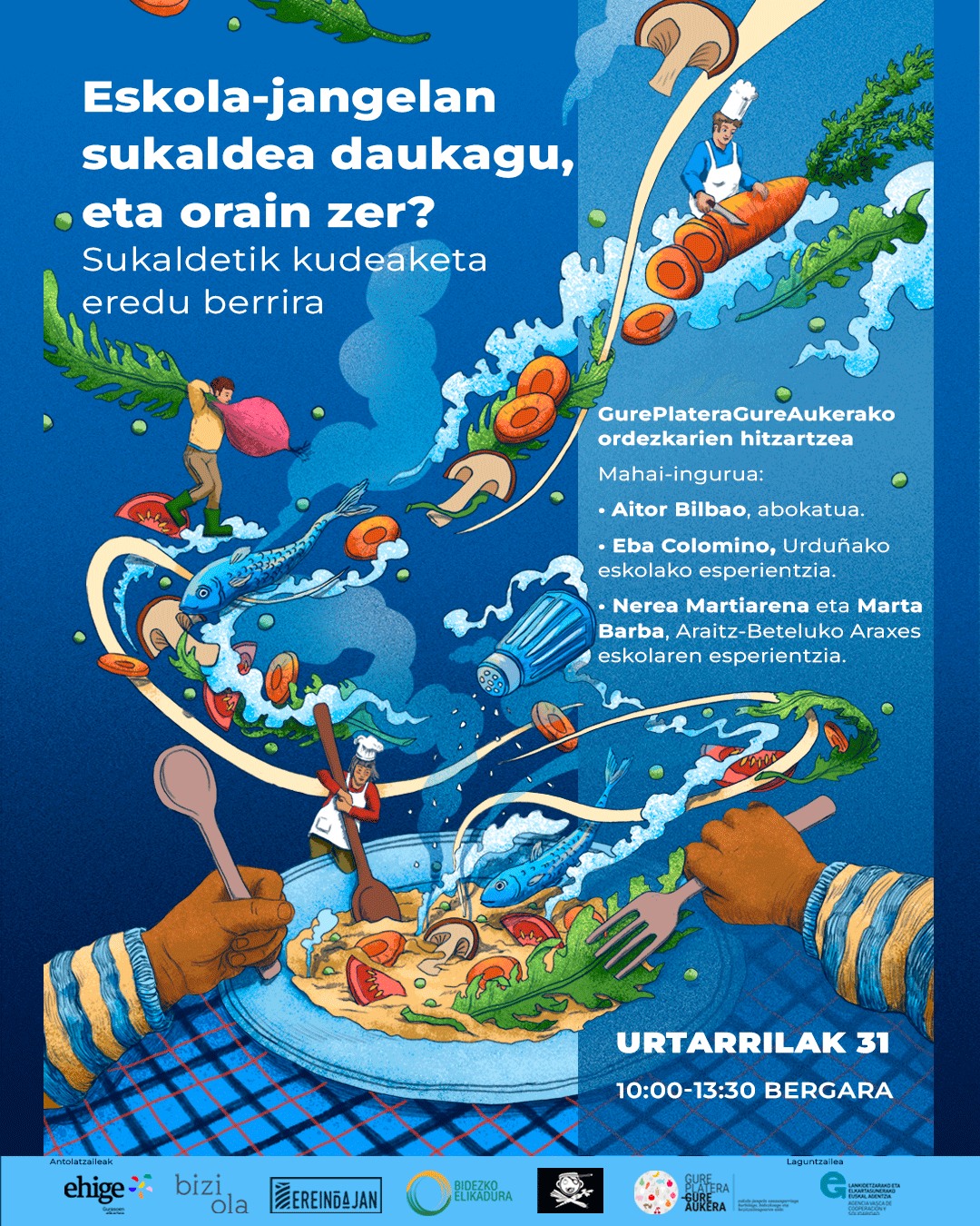 Partiendo del compromiso político adquirido por el Parlamento Vasco en 2019, reflexionaremos sobre la gestión descentralizada de los comedores escolares. Para ello contaremos con la presencia de un abogado experto en la materia, Aitor Bilbao y conoceremos dos experiencias: la gestión municipal en Araitz-Betelu y la experiencia de Orduña.